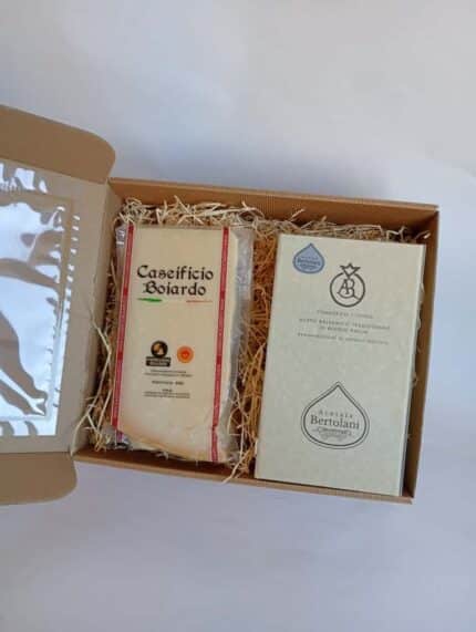 Caja A con Vinagre Balsámico Tradicional de Módena DOP “Aragosta”, Parmigiano Reggiano de 24 meses y Vino Espumoso Spergola